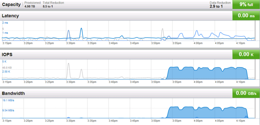 - 만약 VAAI가 적용되어 있을 경우 Data Mover를 대신하여 하드웨어에서의 데이터 작업이 이뤄지며, esxtop를 실행하여 CMDS/s, READS/s, WRITES/s, MBREAD/s, and MBWRTN/s의 수치를 확인할 수 있음